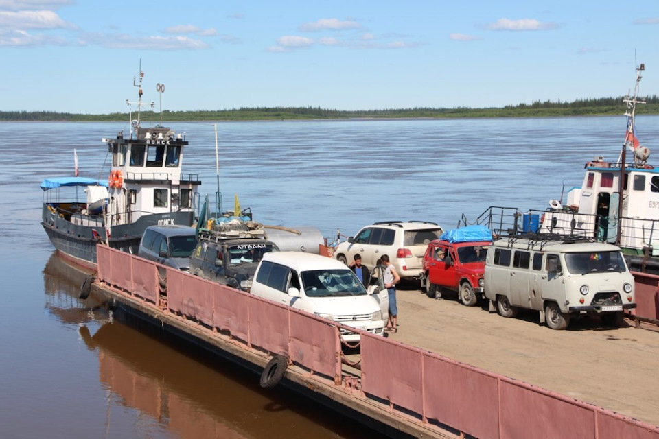 Проснулся я возле парома через Алдан. Милая старушка с соседнего парома нам пояснила, что паром отошёл только что. А ходит он утром, в обед и вечером. Ну или по заполнености. Балдеем перед паромом. Только Наталья разложила завтрак, как начали запускать на паром.