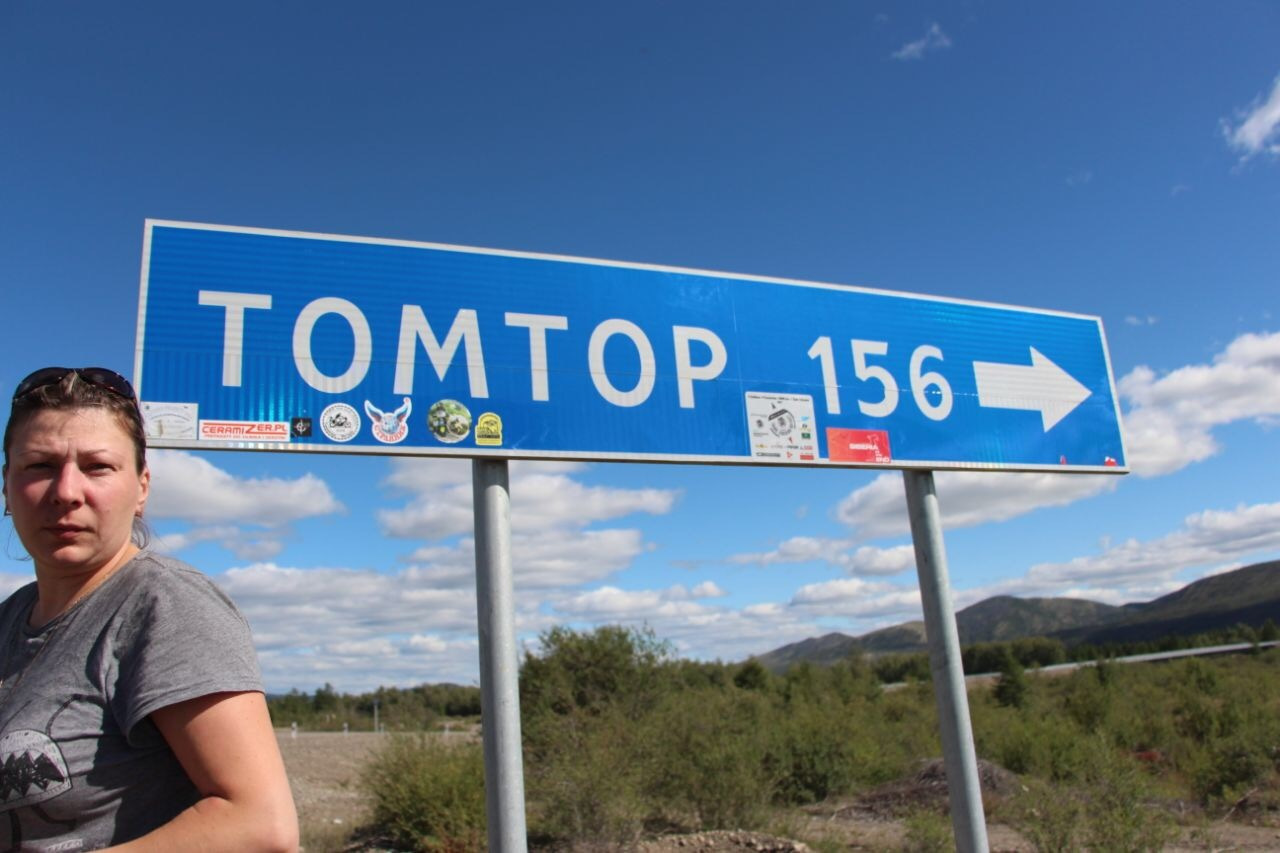 И вот развилка. Впереди табличка Магадан, Томтор.