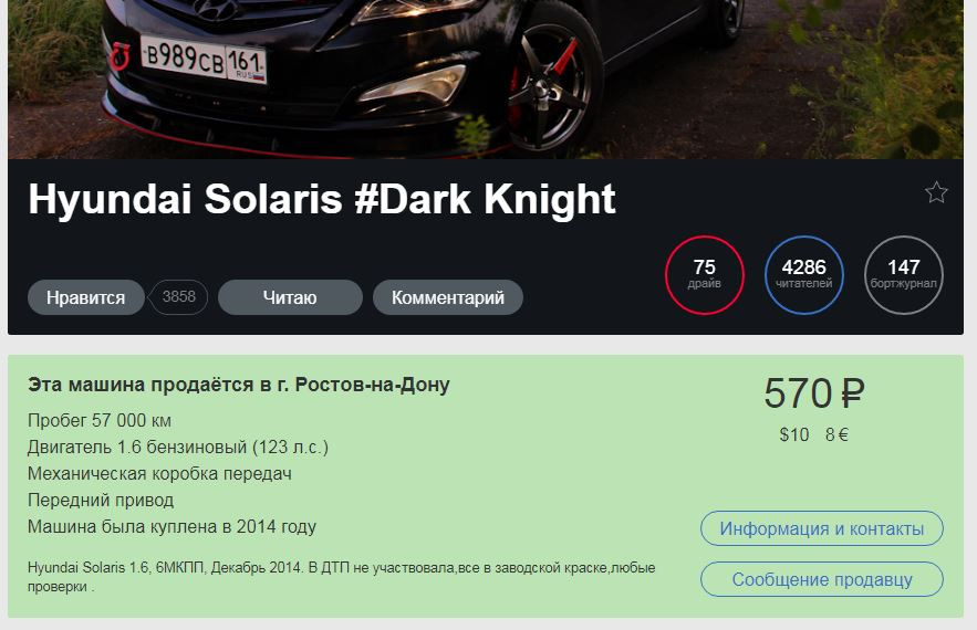 И всегда ходит такой стереотип, что на Д2 своим с Д2 врать не будут. Что в клубах машина на виду и врать тоже не будут. И почти без проверки такие авто продаются. Продаются, часто обманным путем утаивая многое. Но вот идеальная машина – Солярис 2014 года с пробегом 57.000 км от одного хозяина, но наверняка нет дилерской обслуги. И что такого скажете Вы? Зато посмотри его БЖ. Он сам сделает лучше, чем любой дилер!