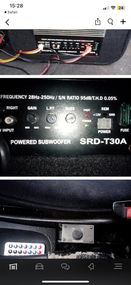 Внимательно прочитать статью по настройке саба. Судя по фото все настройки у Вас есть. Главный критерий Ваши уши. Ну или приехать в коппанию по установке музыки в авто, где с помощью spl микрофона и специального софта Вам ВСЁ настроят, как положено по графикам АЧХ, и не факт что это Вас устроит.