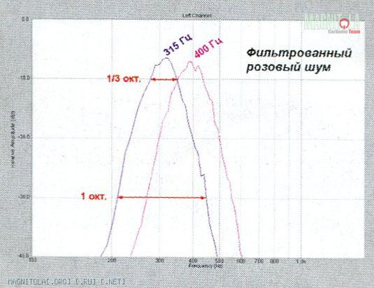 Как измеряют АЧХ системы в реальных условиях её работы? Обычно так: на вход подают розовый шум, в помещении прослушивания устанавливают измерительный микрофон и спектроанализатор реального времени (RTA, Real Time Analyser). Внутри спектроанализатора есть около тридцати узкополосных фильтров, вырезающих из полученного от микрофона сигнала полоски шириной в треть октавы. Это — принятый фактический стандарт, а выбор ширины полосы объясняется тем, что пики и провалы намного уже трети октавы (1/6 и меньше) слух практически не воспринимает. Прибор, в котором одновременно работает тридцать фильтров с измерителем уровня выходного сигнала каждого и общим дисплеем, куда все уровни выводятся в виде гистограммы — это всегда недёшево. Зато быстро.