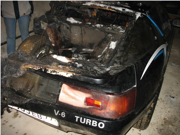 Автомобиль с турбированным двигателем долгое время стоял в гараже, а потом и под открытым небом, пока не был куплен нынешним владельцем. К сожалению автомобиль достаточно сильно выгорел и его восстановление кажется практически невозможным.