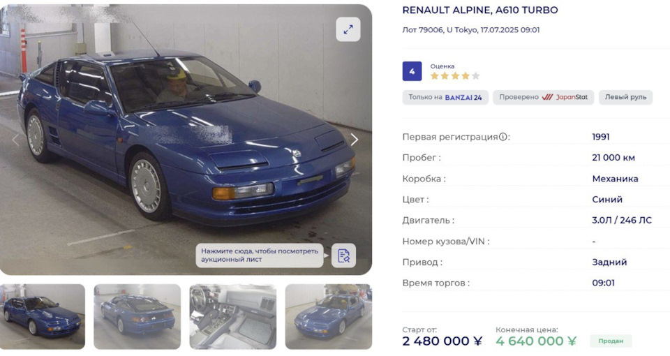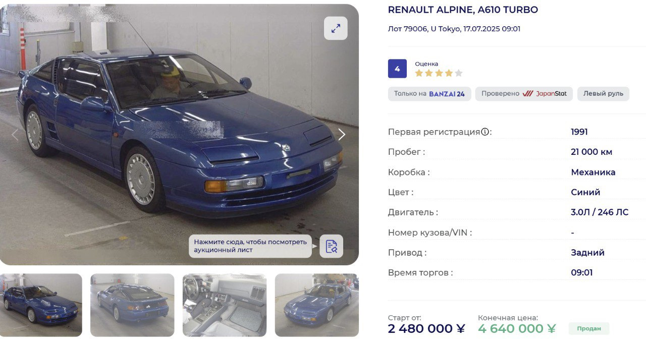 Имеющийся на Драйве красный Альпин продавался как раз на авто.ру. Сравнительно долго, кстати. Уверен, будь это Порше или Лотус, за тот ценник ушёл бы влёт.