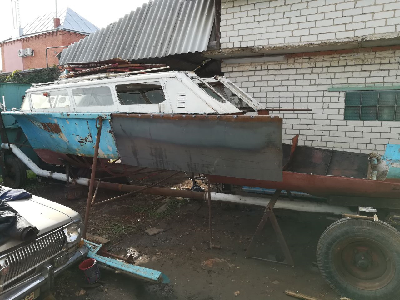 Приобрели с кумом это корыто, и теперь из него предстоит сотворить нечто крутое. Для начала изготовили телегу и краном переставили посудину на место. В 3d max накидал то, что имеем, и примерно то, что должно получиться…