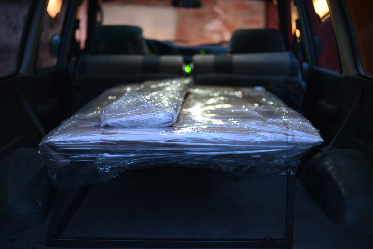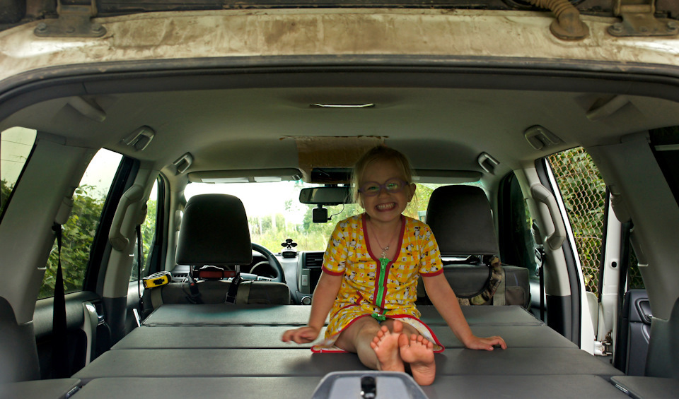 Одновременно выяснилось, что ножки не обязательно просовывать между спинками передних сидений и поджопниками (как планировалось). Гораздо ловчее оказалось ставить их промеж подушек заднего сиденья.