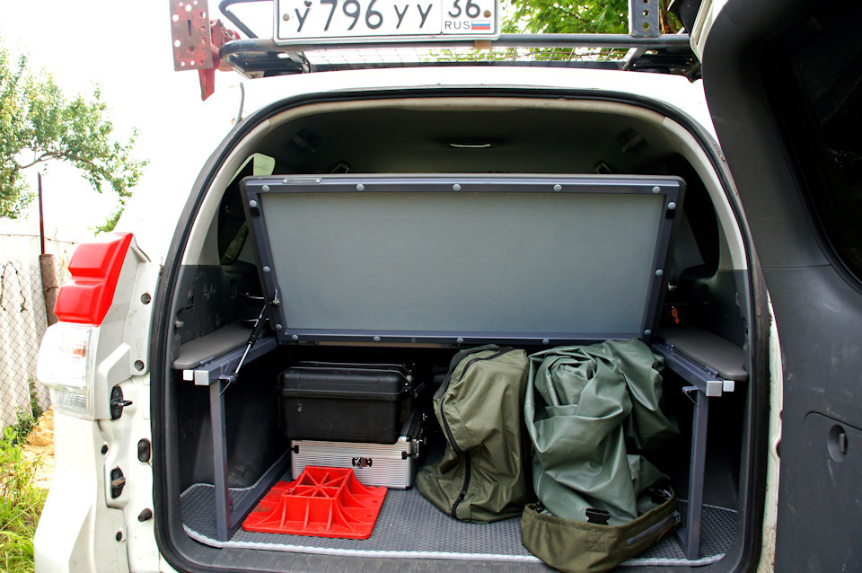 Я так понимаю, что обустройства спальником — это скоре усовершенствование багажного отсека и спального места. Когда много походный вещей. Я пока выхожу из положения таким способом- на крышу капсулу 500 лит., а в багажник надувной матрац туристический ( толщина 10-15 см. Спать шикарно. Пол в Прадике 150 ровный.Третий ряд в полу. Седушки 2го откинул и все дела. Но это поездки на пару дней:)))