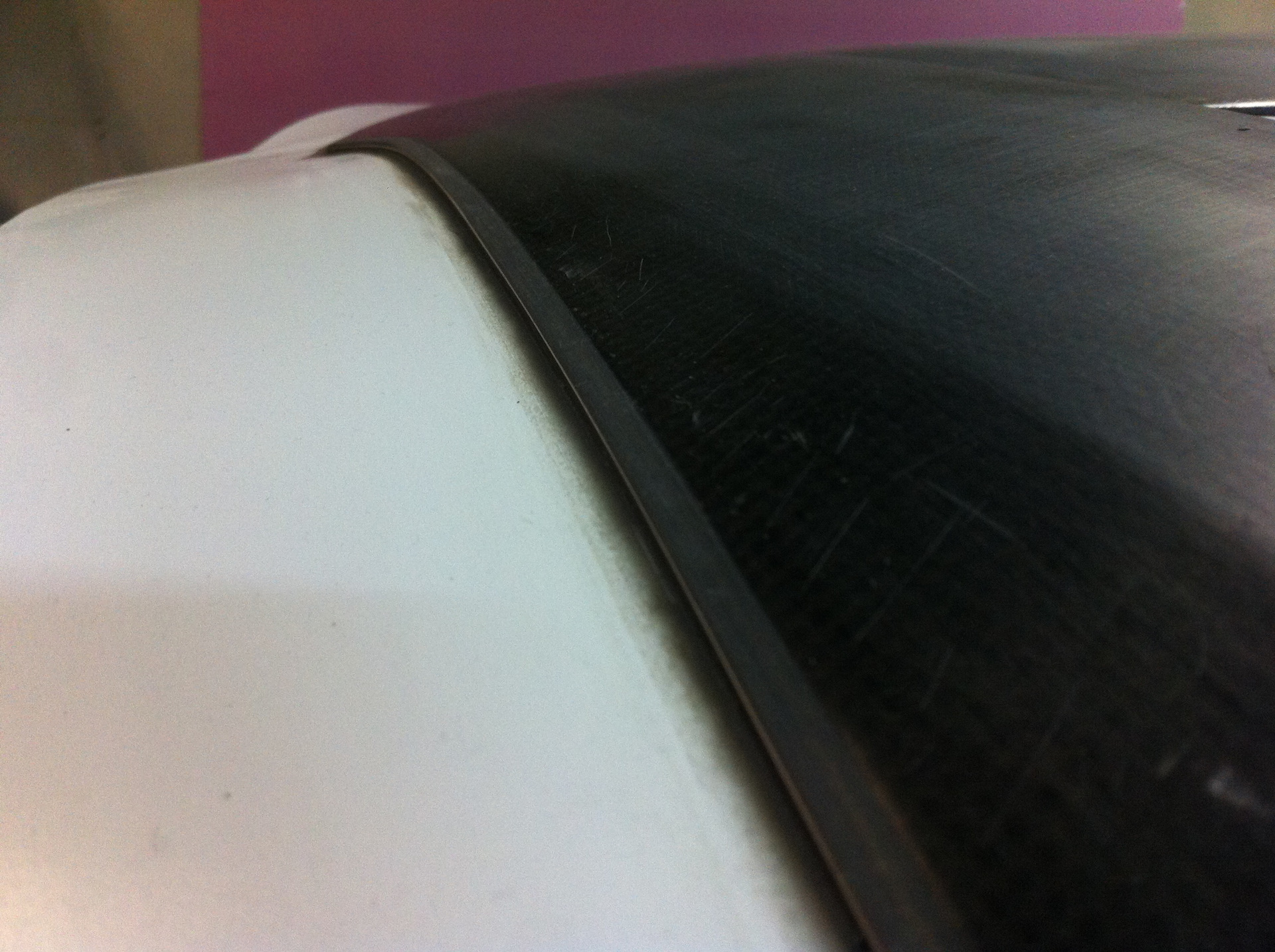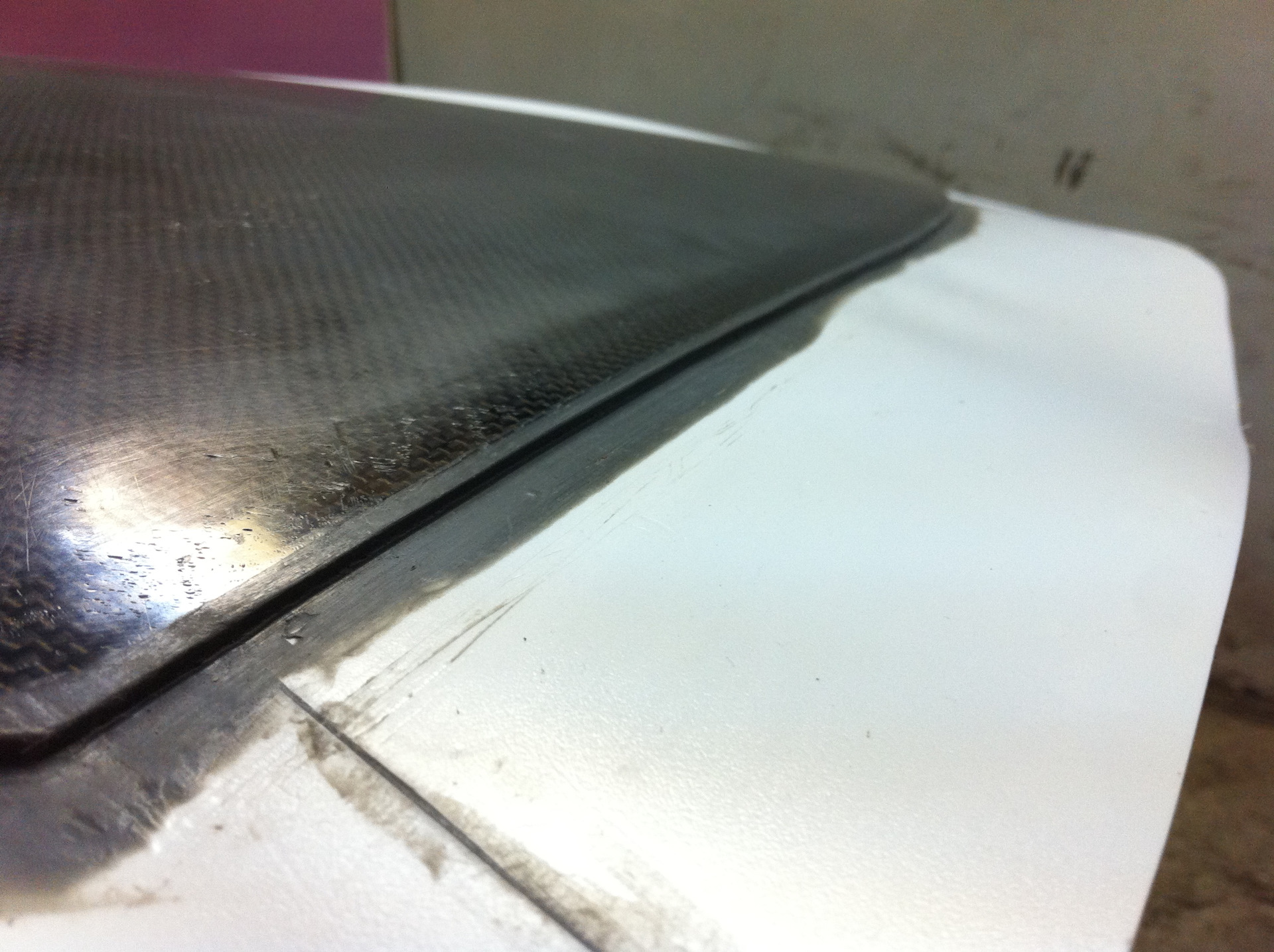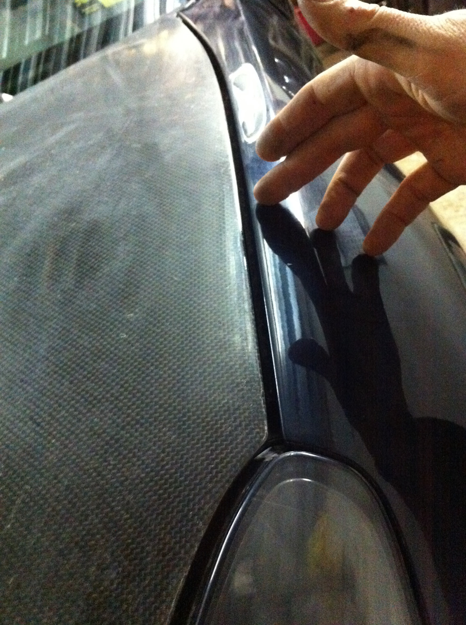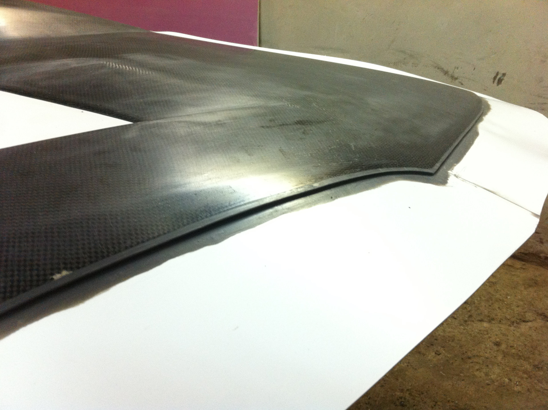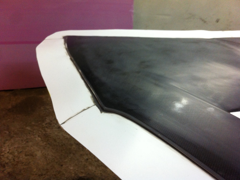 Итак, после усиления поверхностей и исправления геометрии оригинального капота, описанных ранее в тизере, а так же после перешлифовки поверхности после снятия старого лака, приступил к определению необходимых доработок и изготовлению отбортовки для матрицы.