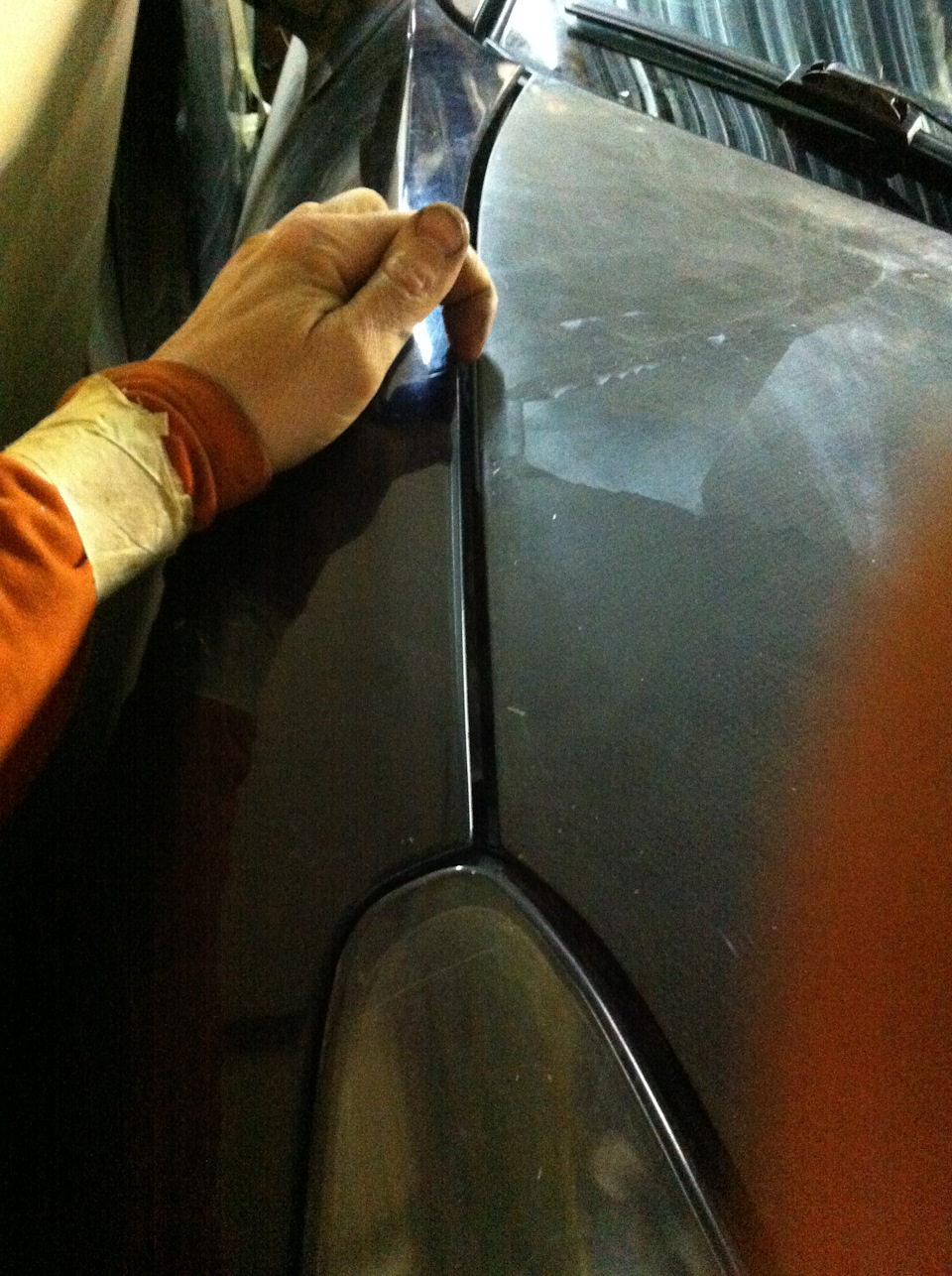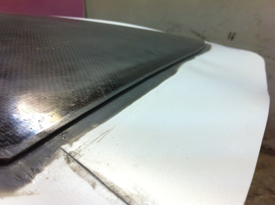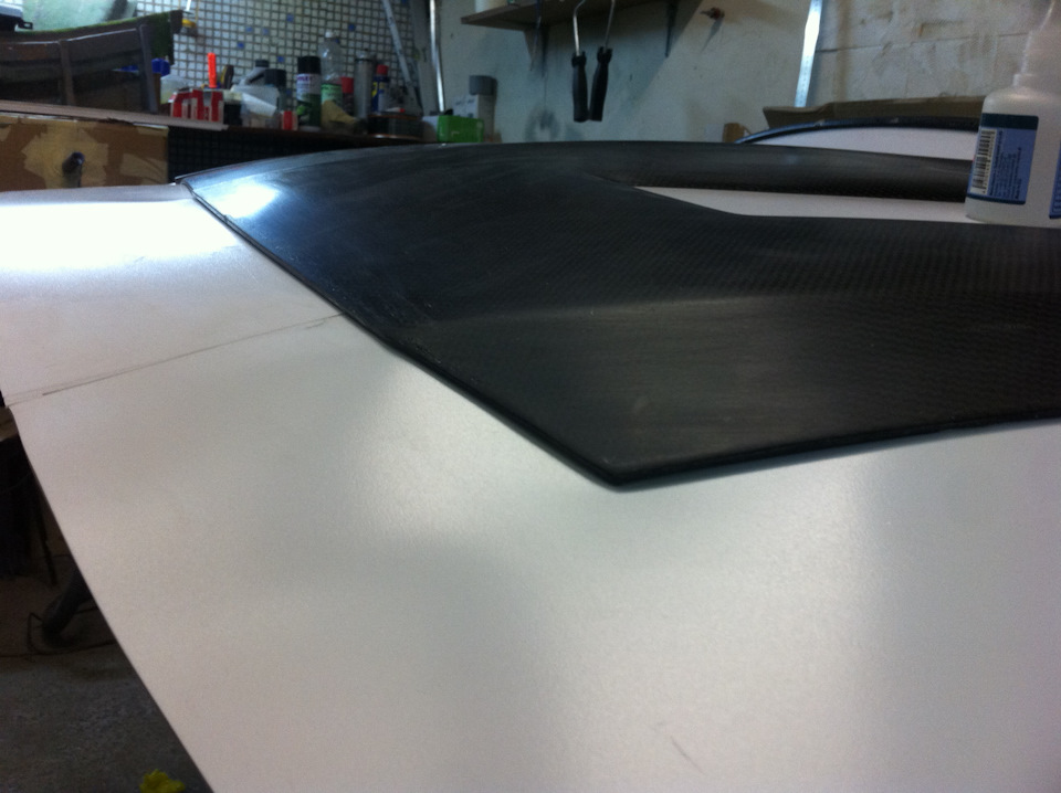 Отбортовки старался клеить так, что бы они были по возможности параллельны плоскостям капота, и, на одинаковом от не расстоянии в пару миллиметров. Местами приходилось подточить капот, или погреть феном пластик.