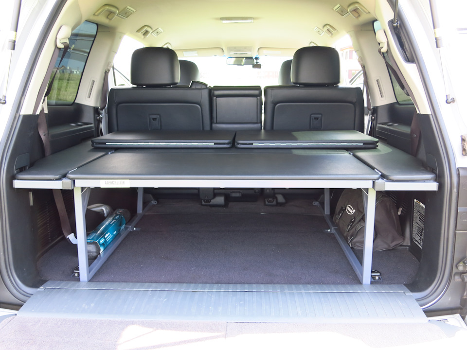 Доброе время суток! Очень нравится Ваша работа! Самый лучший спальник на мой взгляд! Хочу такой же на ТЛК 100 как Вы сделали на 200-й! Вопрос такой куда девать среднюю ножку, чтобы она по салону не болталась? Возможно ли раскладываемую часть убирать не на основной спальник, а между сиденьем и спальником, борьба за сантиметры( чтобы в нижнюю часть помещался мотор и ящики высотой 35см, а сверху на спальник холодильник высотой 59-60). Еще вопрос если на отдельную раздвигающуюся большую часть я буду класть лодку весом 70 кг и в таком положении буду ехать до места назначения ну например 1000 км, выдержит ли конструкция? Возможно еще возникнут вопросы, напишу позже, надеюсь написал понятно)))) Спасибо!