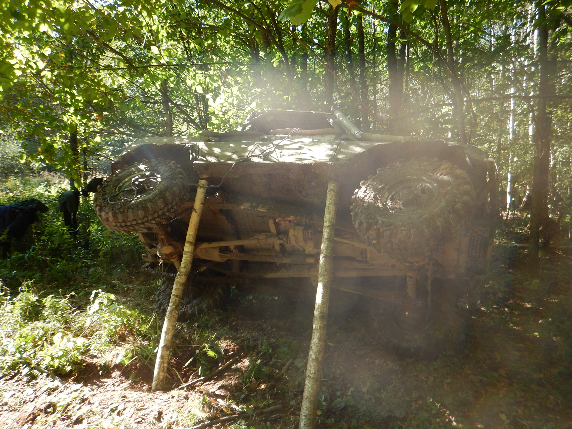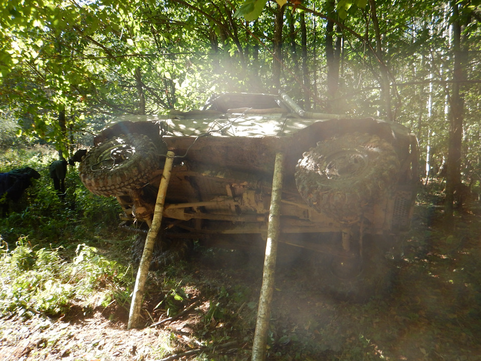 Скажу сразу — не сразу нам это удалось сделать — я имею ввиду положить тачку на бок. УАЗик чего только не делал, скользил колесами, подпрыгивал, но не желал отрывать колесики от земли )))))