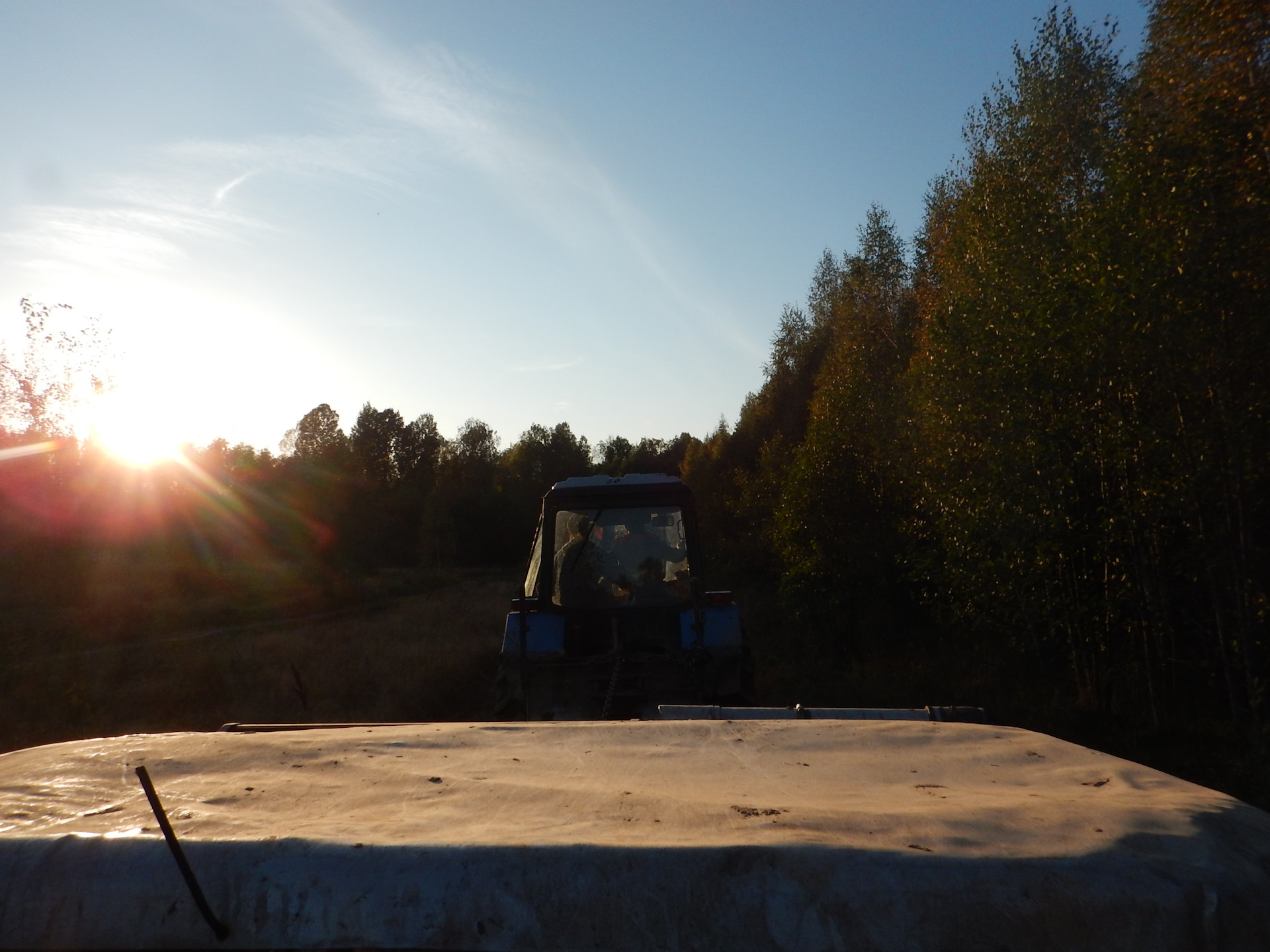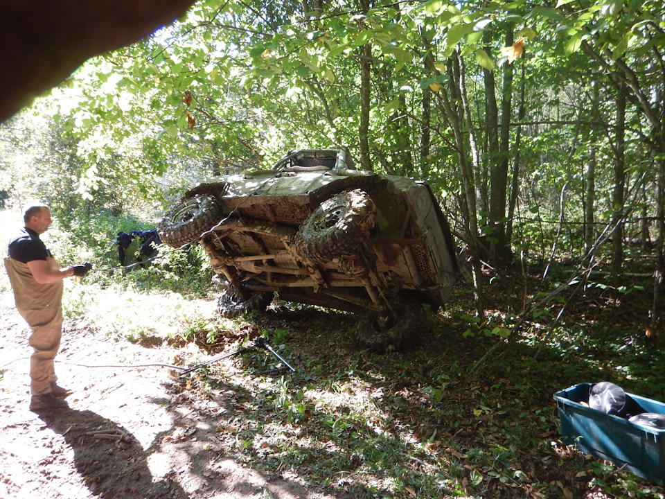 Этот трактор в лесу таскает деревья… Он просто накинул цепь, толщиной с мою руку нам на проушину и потащил… Самое главное было ни за что не зацепиться, трактор бы наверно даже не почувствовал бы это, как мы лишились бы моста ))))) Она тащил нас по колеям в которых наши колеса весели в воздухе — тупо на мостах! Я был в шоке. Дотащил он нас до деревни, а там мы поймали буханку, которая дотащила нас уже до лагеря ))))) К этому времени уже практически стемнело, все разъехались… Ну и мы отдохнули и поехали домой в нерезиновую )))) Добрался я домой часов в 5 утра…