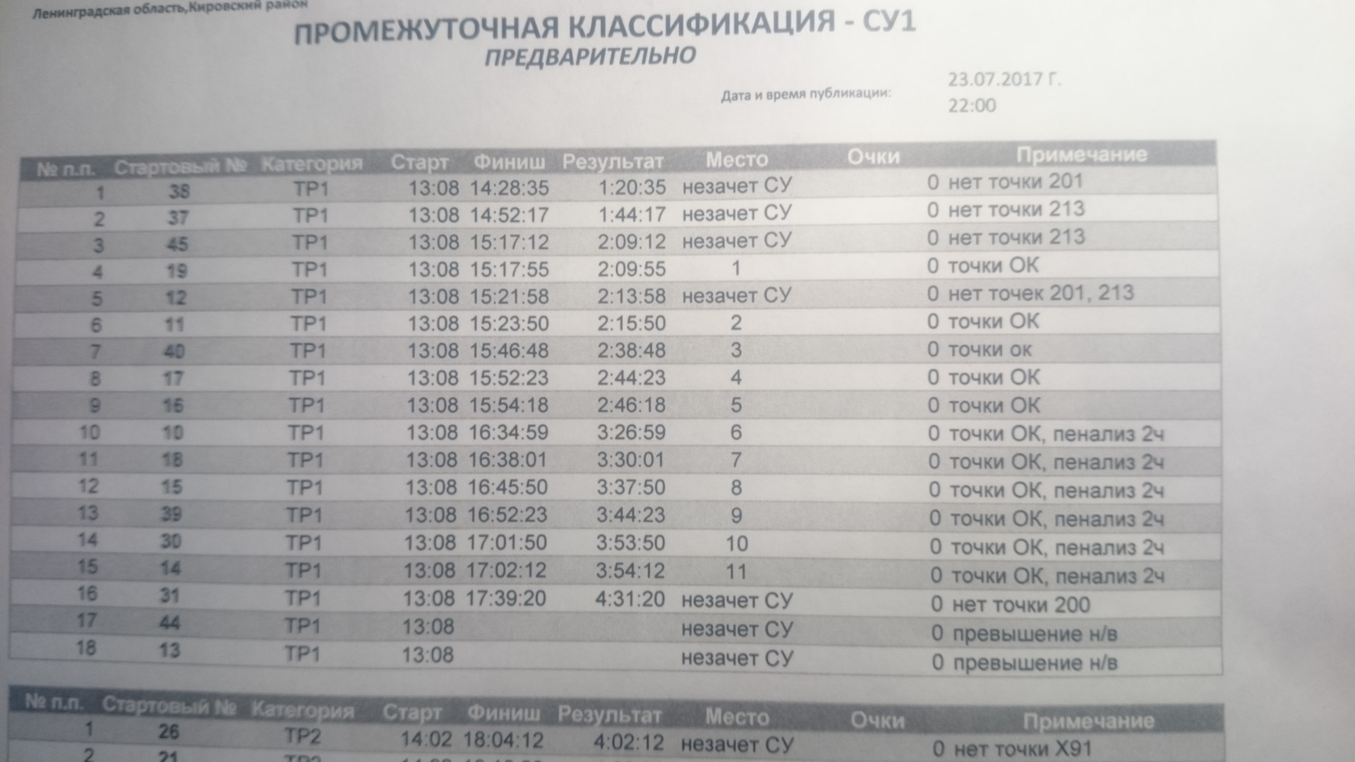 Вот так вот, никого не хочу ругать, молодцы! ))))) Наоборот! перерабытывают люди, заседают до 23:00 (время публикации 23:15). Все ради нас, чтобы все было справедливо, по правилам и честно… Они за справедливость и четкое соблюдение правил! Наверно это по правилам. Не буду вдаваться в подробности, но ничего вразумительного я по этому поводу от организаторов не услышал, но это не важно же! Главное же хорошее настроение и гонка! ))))) 13 экипажей на следующий день написали заявления, в которых содержалось требование отменить результаты СУ1 — были посланы со своими бумажками )))))