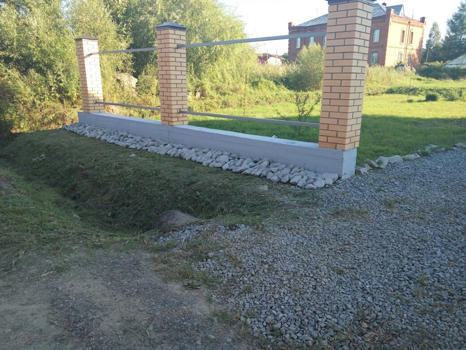 ибо толку ростверк такой широкий заливать для столбов и профлиста — на таких фундаментах дома строят!