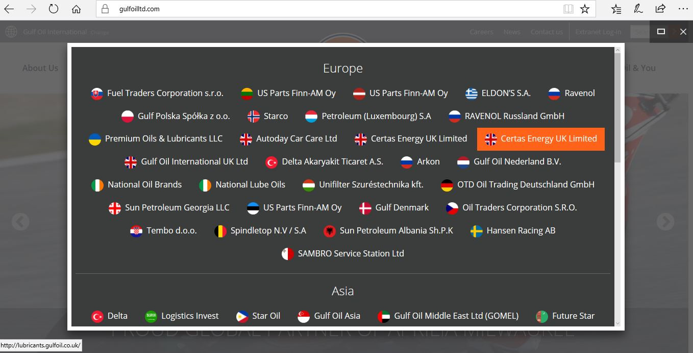 — компанию GULF Oil Limited Partnership(компания из США, управляющая деятельностью бренда Gulf в Северной Америке — управляет сетью АЗС и производством смазок Gulf).