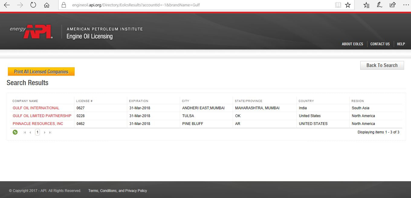 Для потребителя, в частности, это означает, что масла Gulf могут быть просто несовместимы между собой. Действительно, в каталоге лицензий EOLCS, который включает все лицензированные продукты Американского института нефти (только такие масла имеют право указывать на этикетке вязкость по API вида 10W-40 или 5W-30 и так далее), компании GULF Oil International и GULF Oil Limited Partnership представлены параллельно. Дело в том, что у них просто разные товарные линейки под одной и той же маркой!