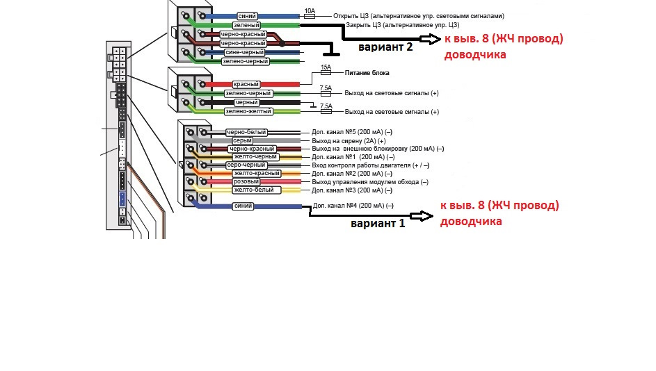 — Вариант 1 — от сигнализации, в моем случае это доп. канал №4 (для Старлайн Е90);
