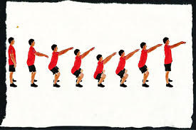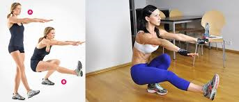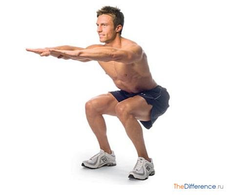 Во время приседания напрягайте пресс, руки вытягивайте перед собой.