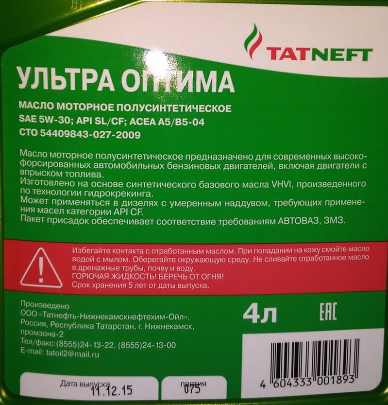 Масло заявлено как: ACEA A3/B4, создано для использования в двигателях Nissan. Произведено по технологии TOTAL LUBRIFIANTS SA (Франция). Производитель АО "Обнинскоргсинтез".