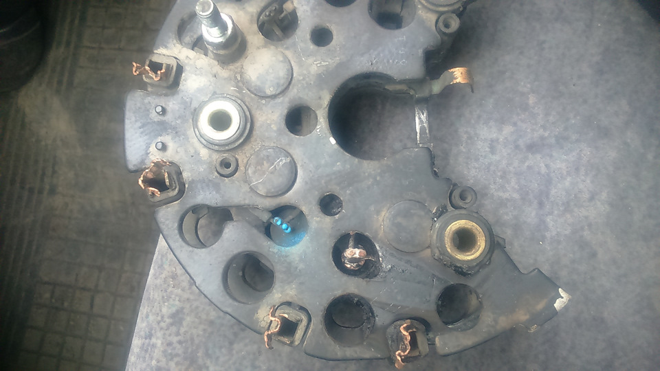 Ну вот и закончился ремонт, пропажа нашлась в диодном мосту, какая оказалось проблема найти его, объездил весь город и нашол в двух местах, в одном было два моста но неподходили по подключению, в растроиных чувствах поехал домой и случайно наткнулся на магазин и о чудо он там есть, все как на моем, купил за 1450р, и быстро в гараж.