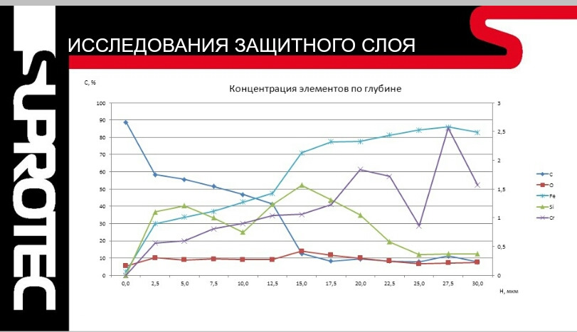 Даже Супротек в своих публикациях напрямую указывает, что основной элемент, из которого состоит формируемое им покрытие — углерод.