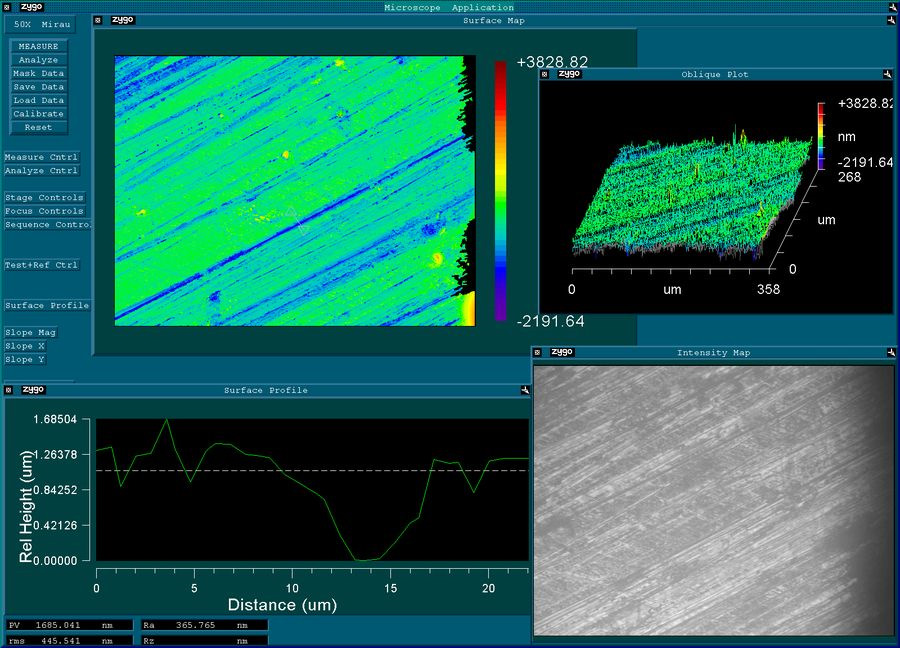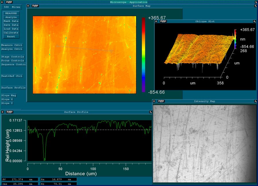 Ниже результат исследования детали, прошедшей обработку препаратом, содержащим Серпентинит, причем часть детали была обработана, а часть нет.