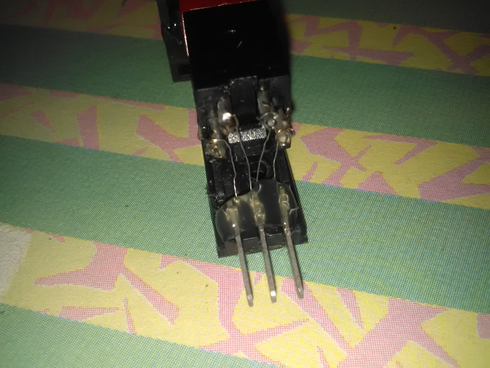 Подпаиваем проволочки к контактам китайской головки. Плюсы идут на крайние контакты, минусы на центральный.