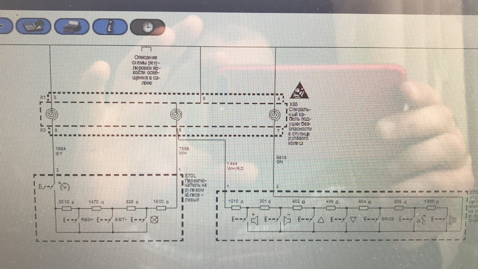 я честно говоря схемой не пользовался у меня в резерве была штатная проводка, за что спасибо Разбору на Бадаево (порядочные ребята там), я просто взял и посмотрел каких проводов мне не хватает и в аккурате это провода вытащил поэтому какие пины (кат номер)стоят на фишке контактного кольца и блока BCM я не знаю да и фотки нету .дальше в последовательности фишка руля номер контакта 3 на ВСМ(зелёного цвета) х3/9, 4 на х3/8, 5 на х3/4 и 6 на (синего цвета) х2/8, блок ВСМ у сиги расположен со стороны водителя прям за ящичком для кредиток снизу который)).Дальше процесс сборки кольцо нужно правильно поставить на нем есть окошко через которое должны видеть жёлтую метку, или же ловим центр аккуратно повернув кольцо до упора и отсчитав три оборота.В обратной последовательности всё собираем что-то в процессе сборки напутать напутать очень сложно, переходим к прошивке как раз прошло три дня и пришёл VCI код для добавления функции.Приложу видос как шил правда свет и видно плохо но собственно там рассматривать нечего .
