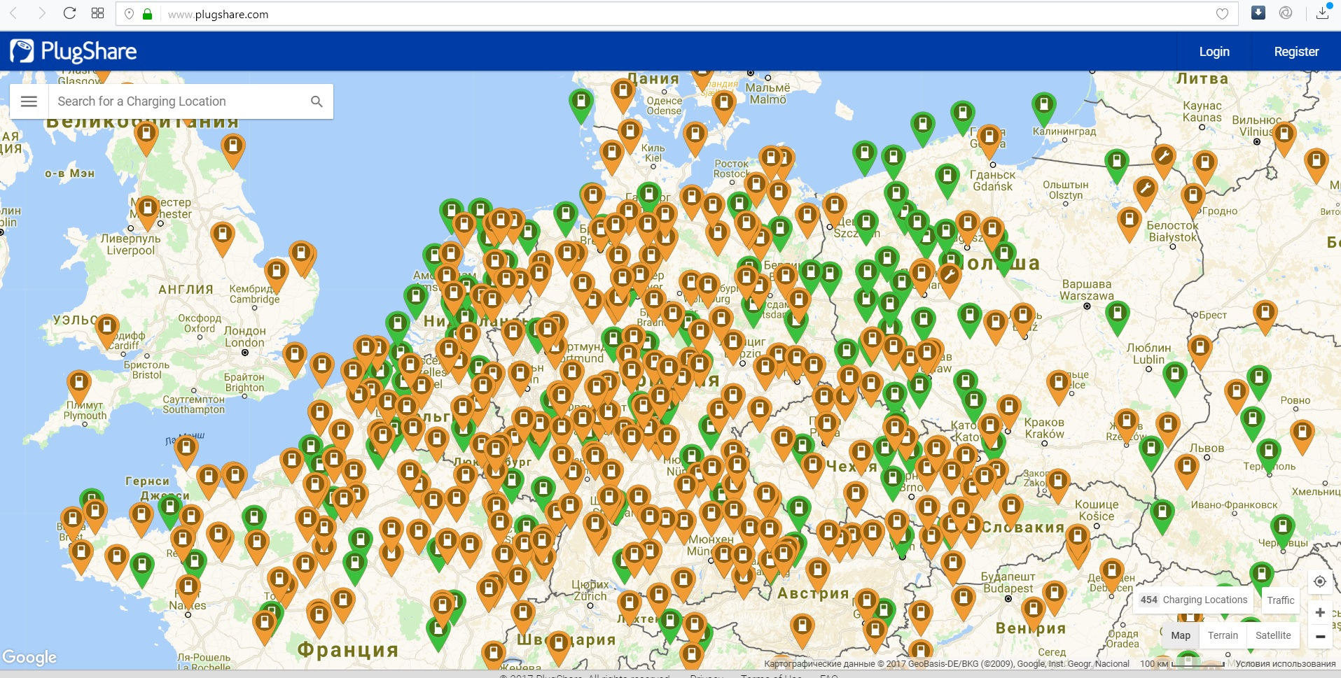 Проблема инфраструктуры существует только у нас. Посмотрев на карту электрозаправок в Европе или США, можно понять насколько мы отстаем в этом плане