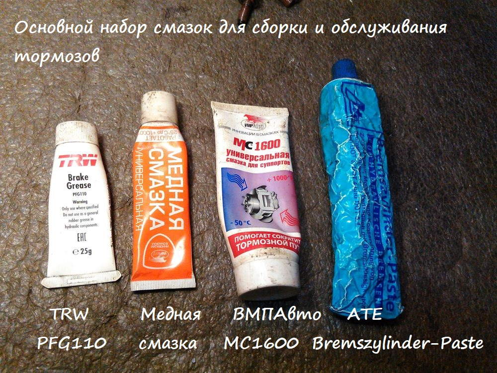 Разумеется, данный материал не ставит целью охватить весь спектр смазок для тормозных систем, здесь я делюсь собственным опытом, какие смазки в данный момент применяю при обслуживании своих автомобилей.