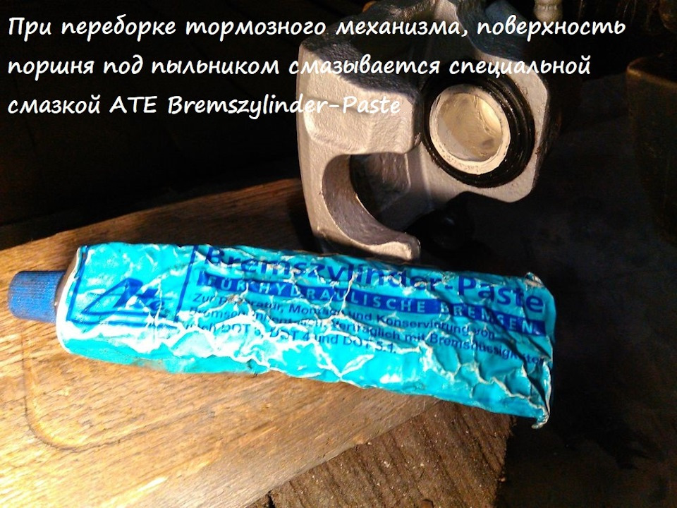 Старую смазку, конечно, лучше удалить. Я извлекаю цилиндр и манжету, т.к. без разборки нормально не почистить. Можно попытаться вымыть старую смазку аэрозольным очистителем тормозов, отгибая манжету пыльника. Вместо ATE, думаю, подойдут смазки TRW PFG110 или ВМПАвто PAG артикул 1523 smazka.ru/shop/pag/