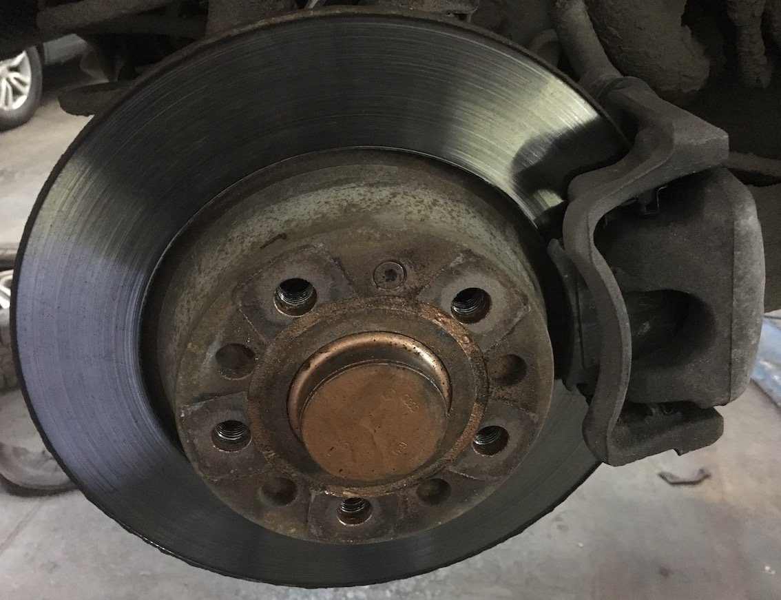 Летом немного погрел тормоза по дороге в Сочи, да и вообще требовалось обслуживание так как диски стояли с завода, но колодки менял весной на пробеге 92500 км., сейчас пробег на момент ремонта составил 105000 км.