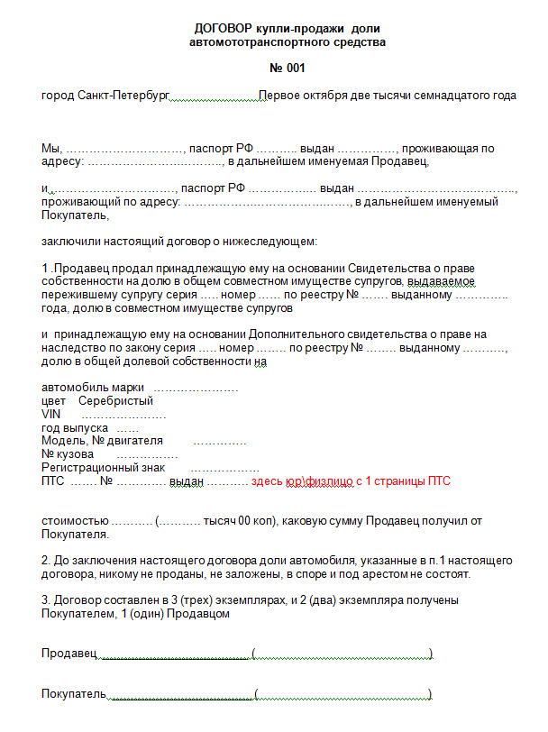 Шаблон Договора купли-продажи доли автомобиля