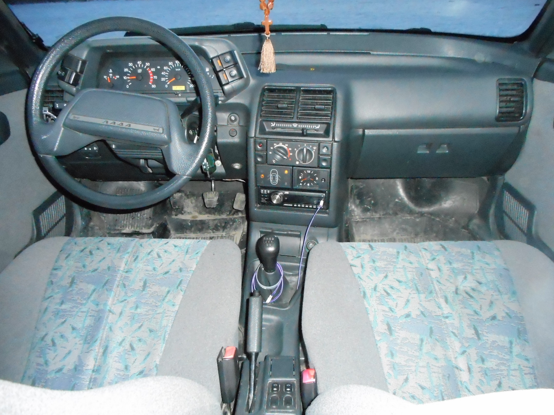 Салон. Передняя панель мне лично напоминает ту самую низкую торпеду от ранней «восьмерки». Удобная комбинация приборов, несколько неудобное расположение некоторых клавиш управления, но при этом сама торпеда вызывает куда больше положительных чуств от ее использования. Да, жесткий пластик, порой скрипящие звуки, но она все же эргономичнее торпеды «восьмого» семейства. В центре же мы видим тот самый сигнализатор незакрытых дверей с силуэтом автомобиля сверху. Очень приятная вещь, честно скажу. По бокам часы, кнопка аварийки (маловата, не сразу удобно нажимать), управление печкой и заслонкой. Больше ничего.