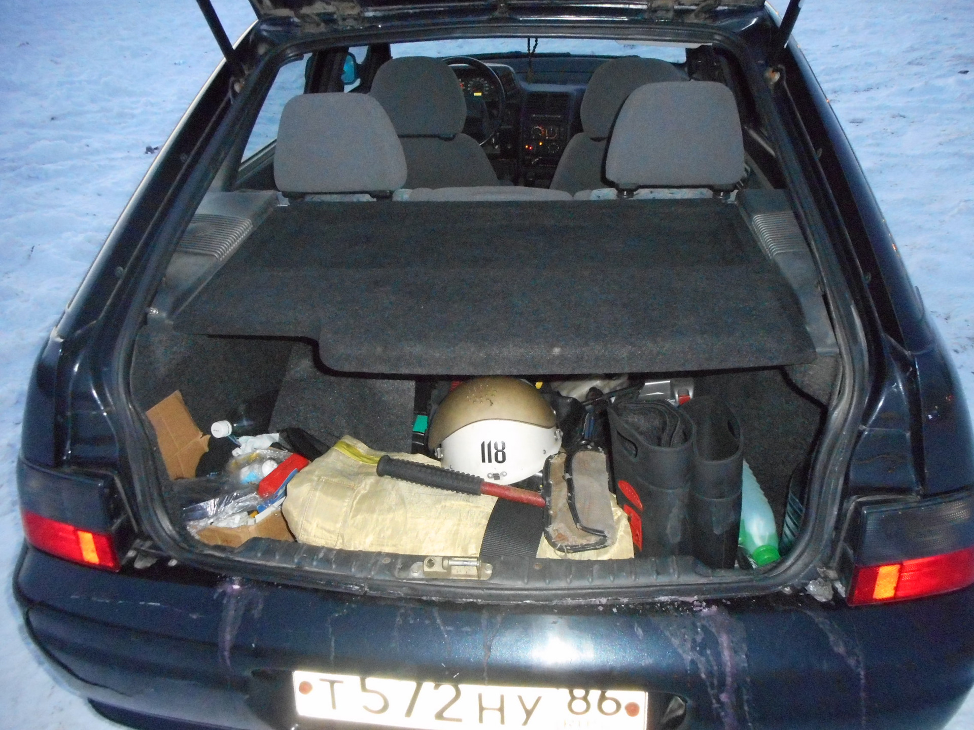 Багажник у «двенашки» не шибко большой, но вполне себе достойный! Мало того, что он уходит вниз, так еще и его край далеко впереди. Михаил, владелец машины, работает пожарным, на фото прекрасно видно, как хорошо уложено его обмундирование. Небольшая полочка для легкий вещей сверху, у задних оконцев динамики – больше ничего и не надо. Заметное отличие от хетчбэков «восьмого» семейства – низкая погрузочная высота.