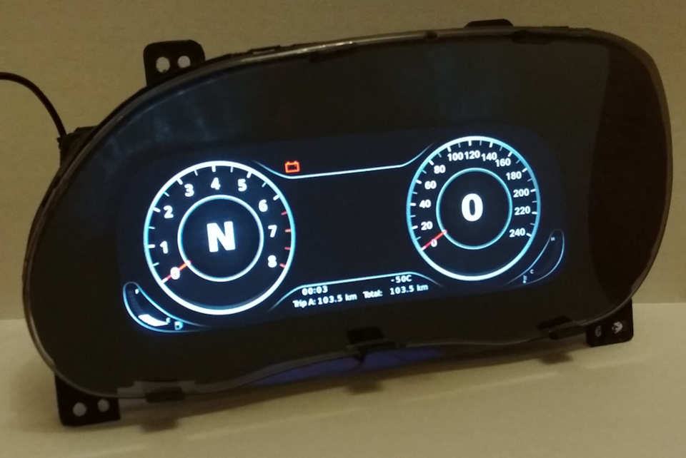 При создании цифровой панели необходимо было повторить форму родной панели, с сохранением всех посадочных мест. Данная цель была достигнута. Цифровая панель приборов использует защитное стекло от родной панели и подключается к торпедо на существующие крепления.
