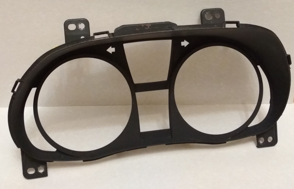Лицевая сторона родной панели Hyundai Solaris имеет сложную форму с двумя большими отверстиями для тахометра и спидометра и маленькими отверстиями для различных индикаторов. Имеется четыре точки для крепления панели приборов к торпедо.