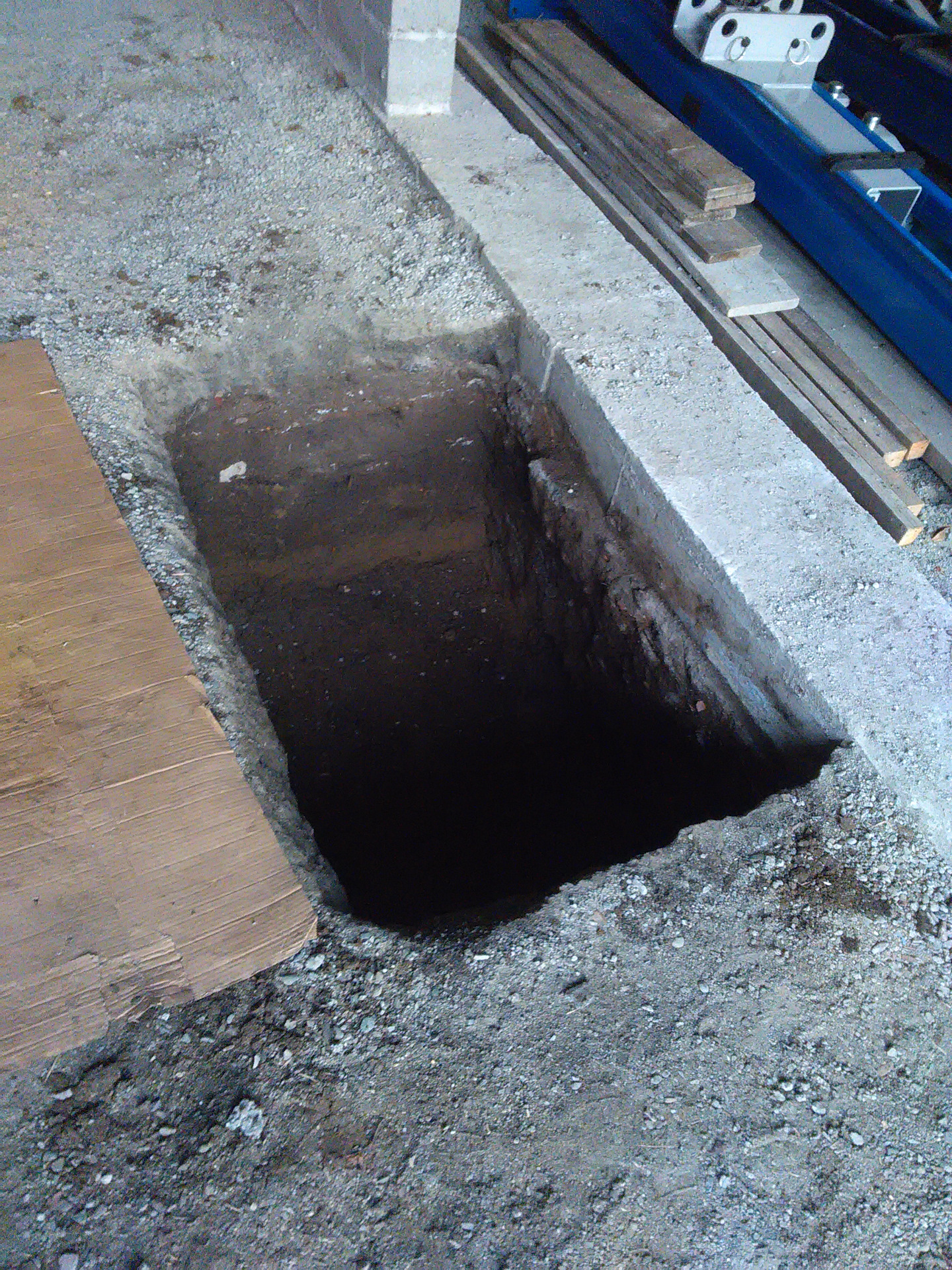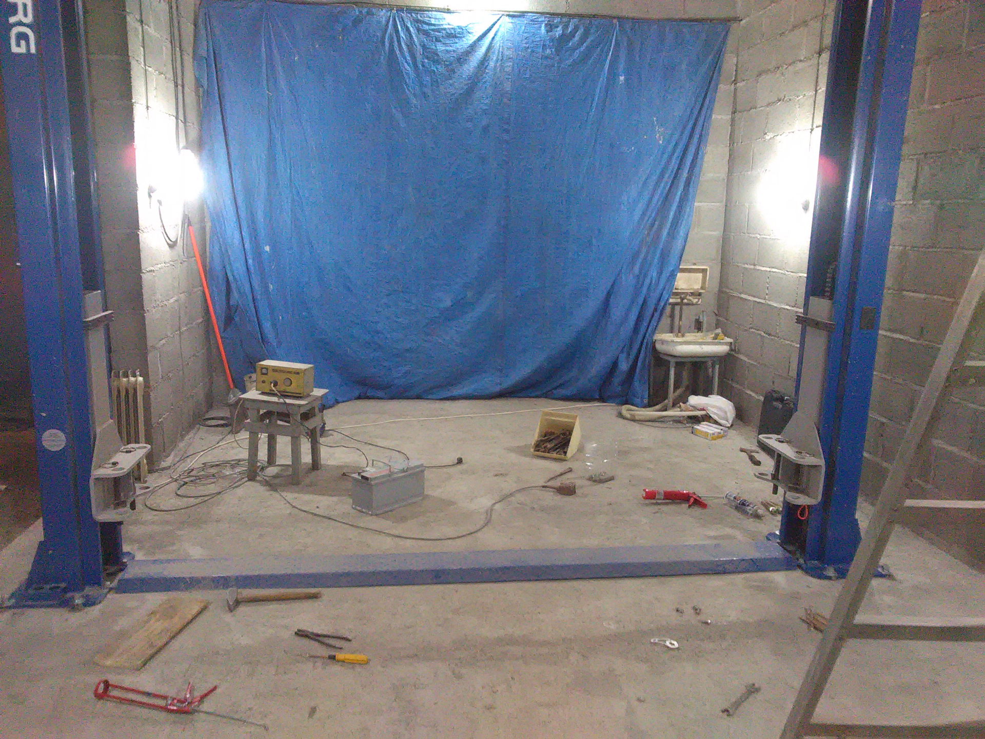 Эту штуку нужно было ставить, машина требовала да и вообще он полностью занял одну половину гаража, опыта установки не было, и позвонив в контору которая поставила подъёмник, человек с этой фирмы был не далеко и заехал на место, посмотрев на гараж и сказав что этих 3.6м высоты хватит для работы, начертил рисунок и объяснил бетоно задание которое нужно было сделать. Тема заключалась в том что нужно было копать колонны под стойки подъёмника 120 на 120 см и глубиной залегания 70см, отказаться от анкеров идущих в комплекте тк были случаи их выскакивания. После чего ставим стойки подъёмника на колоны, кидаем крышку тросов, тем самым размечаем будущие отверстия, покупаем 2 шпильки 1м на 18мм пилим их 10 частей по 20см длиной, сверлим 20мм победитовым сверлом глубиной 20см (чуть меньше тк часть под резьбу на гайку сверху), продуваем воздушным компрессором эти отверстия от пыли, заполняем эти отверстия химанкер веществом (предварительно устроив этим хим контейнерам водяную баню в горячей воде для подогрева чтобы улучшить текучесть), вставляем шпильки на конец накрутив под уровень ровно гайки и шайбы, которые после высыхания химанкер вещества чуть нужно будет дотянуть и тем самым заодно и проверить держит при упоре при затягивании.