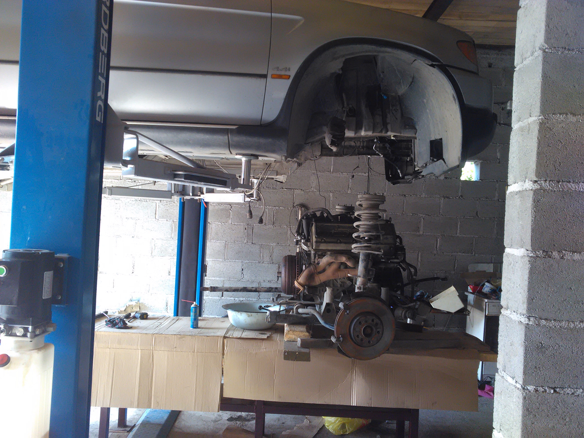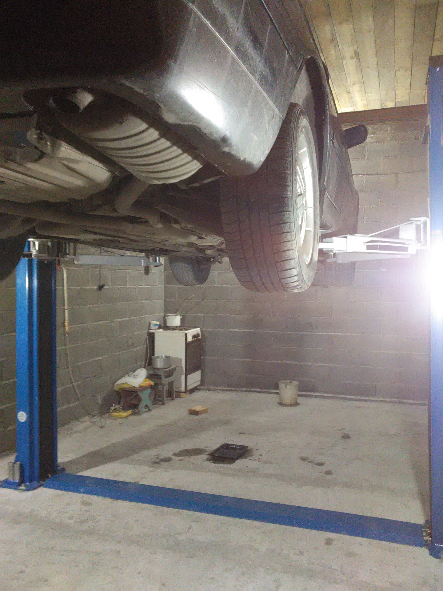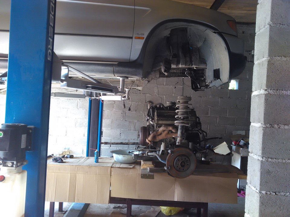На гараже уже была крыша и решил ставить подъёмник, так как под шершнем постоянно оставались пятна антифриза и масла, требовалось обслуживание снизу, а вариант как с е34 со стульчиками досочками и подручными материалами не пройдёт в ввиду веса машины и её сложности при полноценном обслуживании.