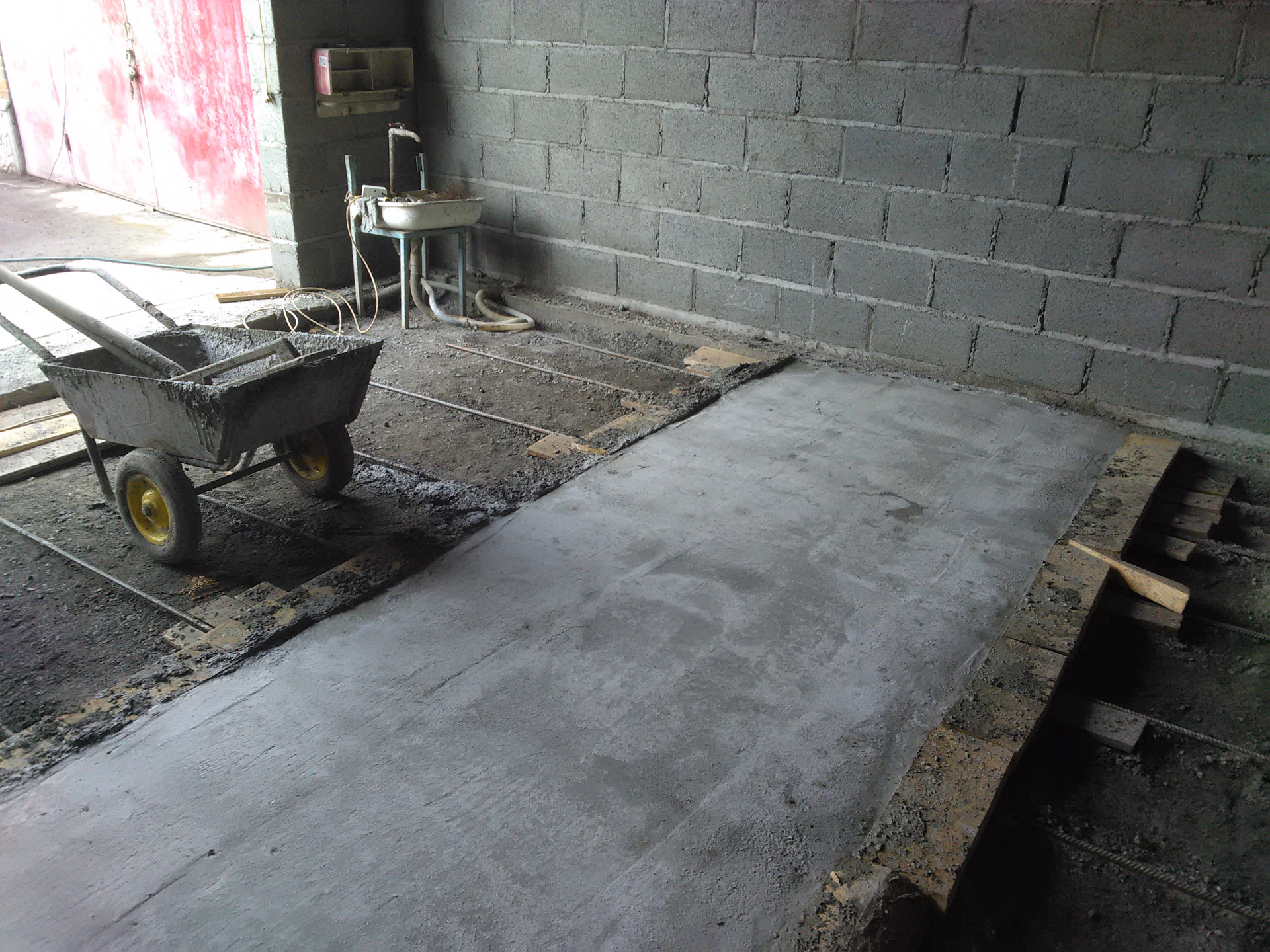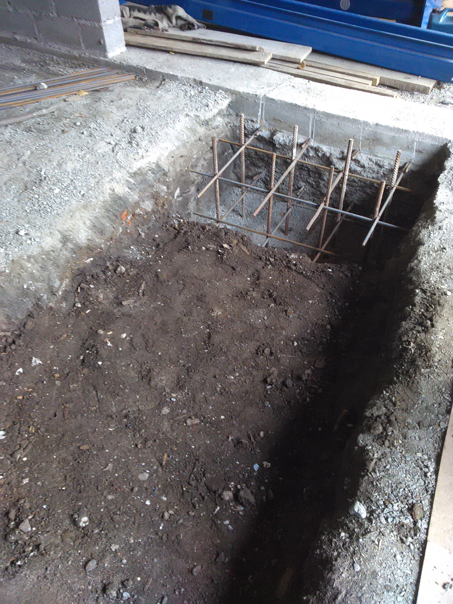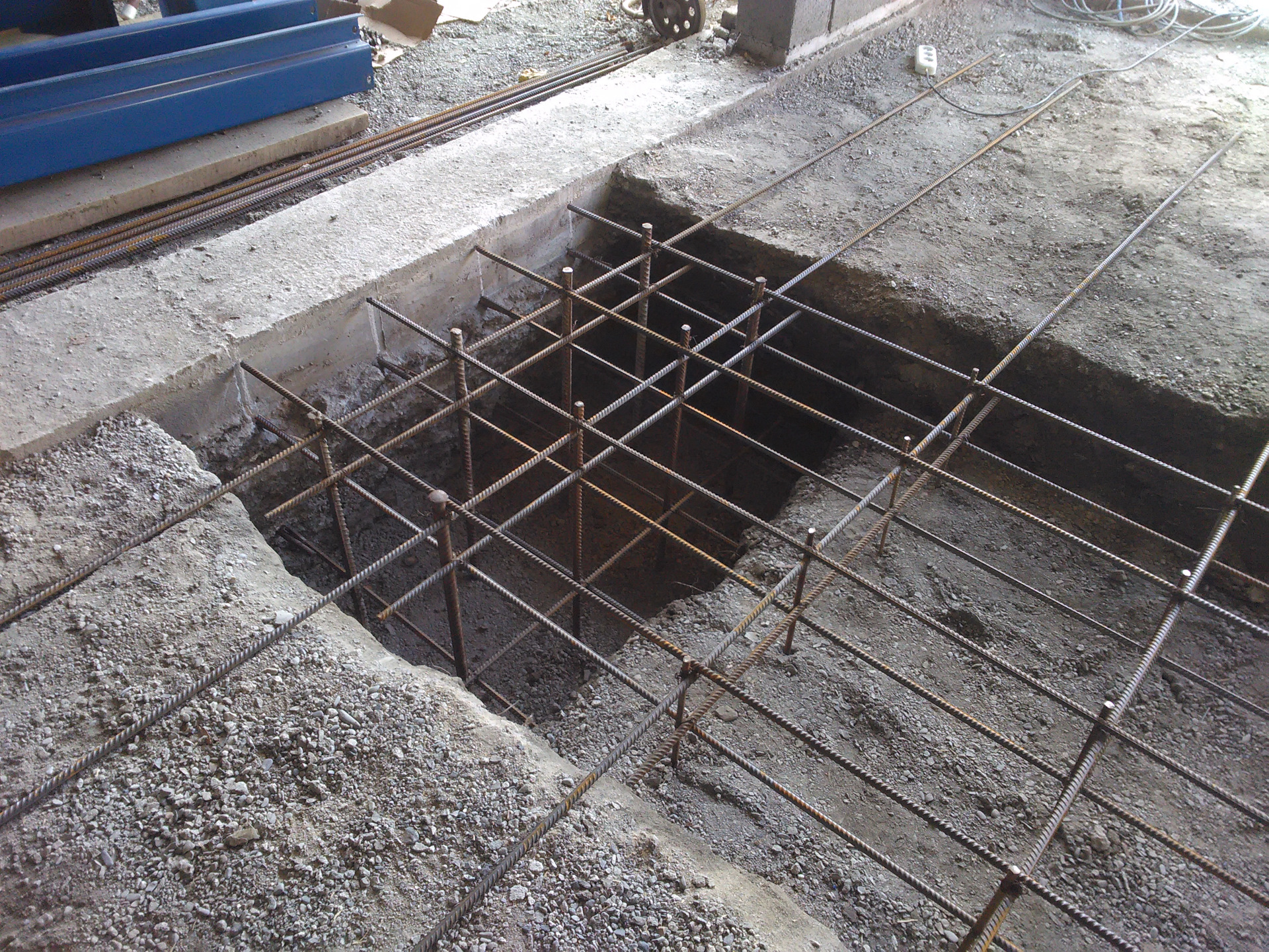 Получился пол с колономи заглублением 120см. но правая стойка подъёмника подъёмника ставилась по въезду с ворот на частично правую ленту фундамента но думаю тк всё так армировано и залито то не будет проблемы, левая стойка полностью попадала на колону.