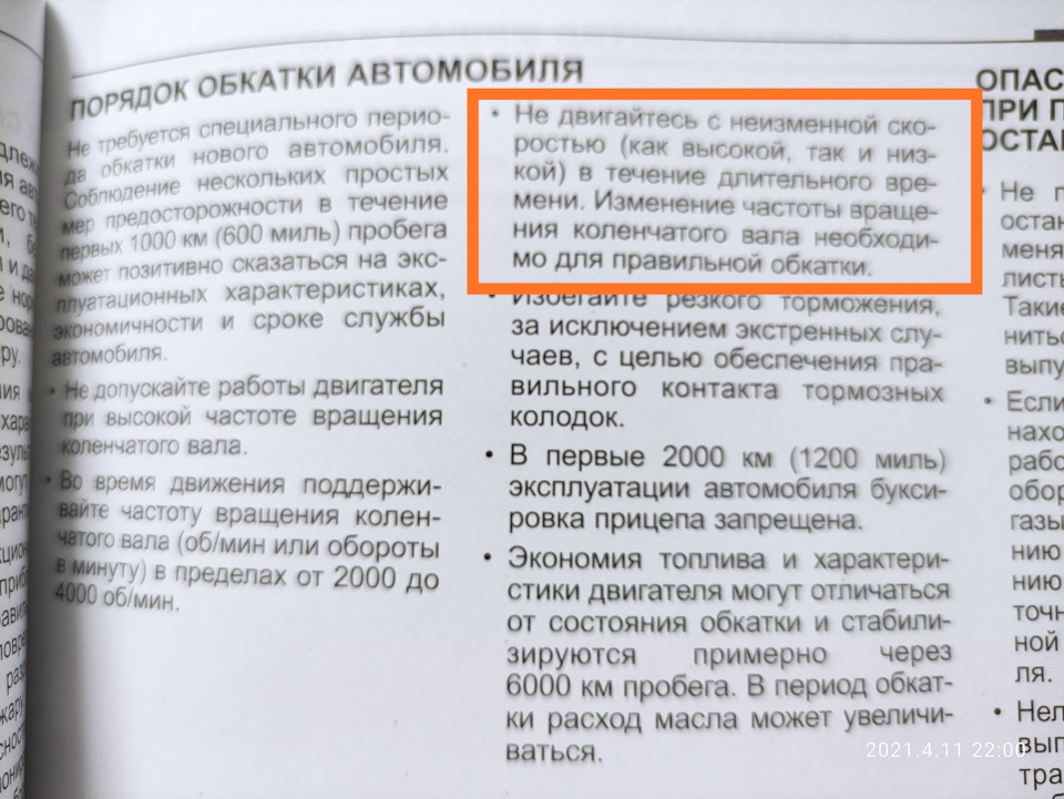 У меня прямо противополжные рекомендации по обкатке в инструкции к авто
