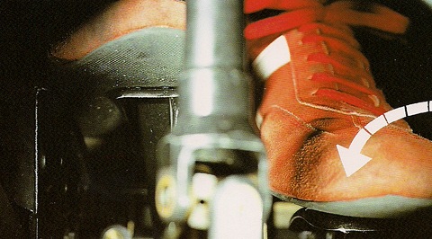 Упор для ног – необходимая деталь гоночной машины. Он должен находиться на том же уровне, что и педаль сцепления, чтобы можно было переключать передачи с помощью одного единственного движения левой ногой, перенося ее на сцепление, и не тратить время на перенос ступни снизу вверх. Как только сцепление было выжато и отпущено, нога должна возвращаться на упор… впрочем, при наличии полуавтоматической коробки передач она может постоянно оставаться там.