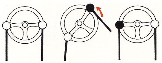 Последний момент, который нужно обсудить в этой главе – положение рук гонщика на руле. Здесь работает старое правило: при движении по прямой руки должны находиться в положении «четверть десятого», то есть левая рука должна быть там, куда указывает стрелка часов в 9.15. На спортивном руле в этом месте находятся две верхние спицы.