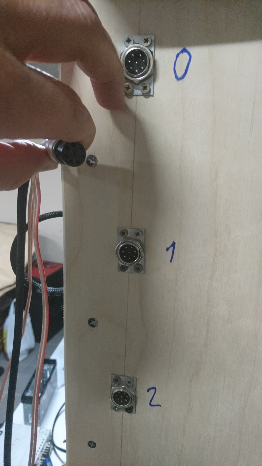 А где можно посмотреть подробнее фото стенда? По разъемам использовали xlr и rca? А на питание провода под зажим?