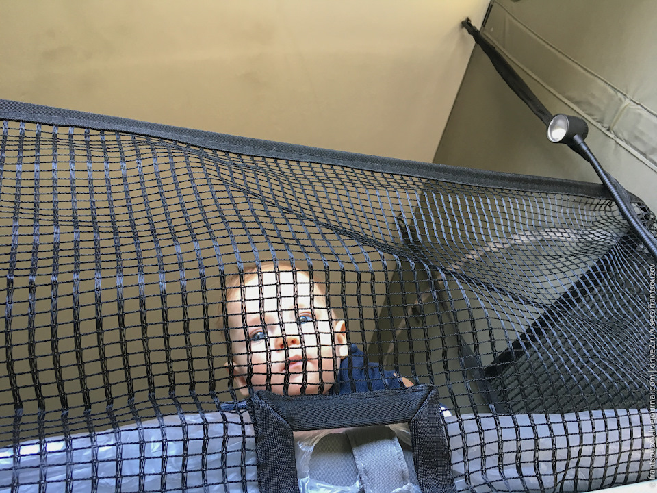 7. В мае были две первых поездки на кемпере, чтобы понять для себя, каково это вообще путешествовать с малышом, которому девять месяцев. Оказалось, что с ним даже интереснее. Разве что сборы стали чуть более неспешными, да и общего багажа прибавилось, но не сильно. Вот вам Виктор, отдыхающий на втором этаже кемпера. Благо что предусмотрительные немцы продумали специальную сетку-манеж для детей.