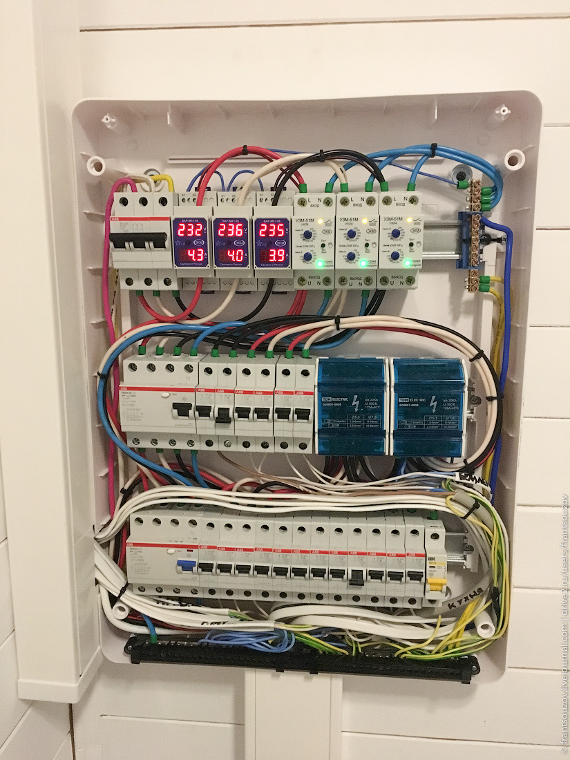 Щиток хороший! Единственное, что друг который работал в Меандре (выпускает как раз эти УЗМ), сказал, что для себя он бы поставил более надежное оборудование для защиты — промышленный вольтметр и контактор. С его подачи у меня стоит Lovato DMK 70R1 + ABBшный контактор.