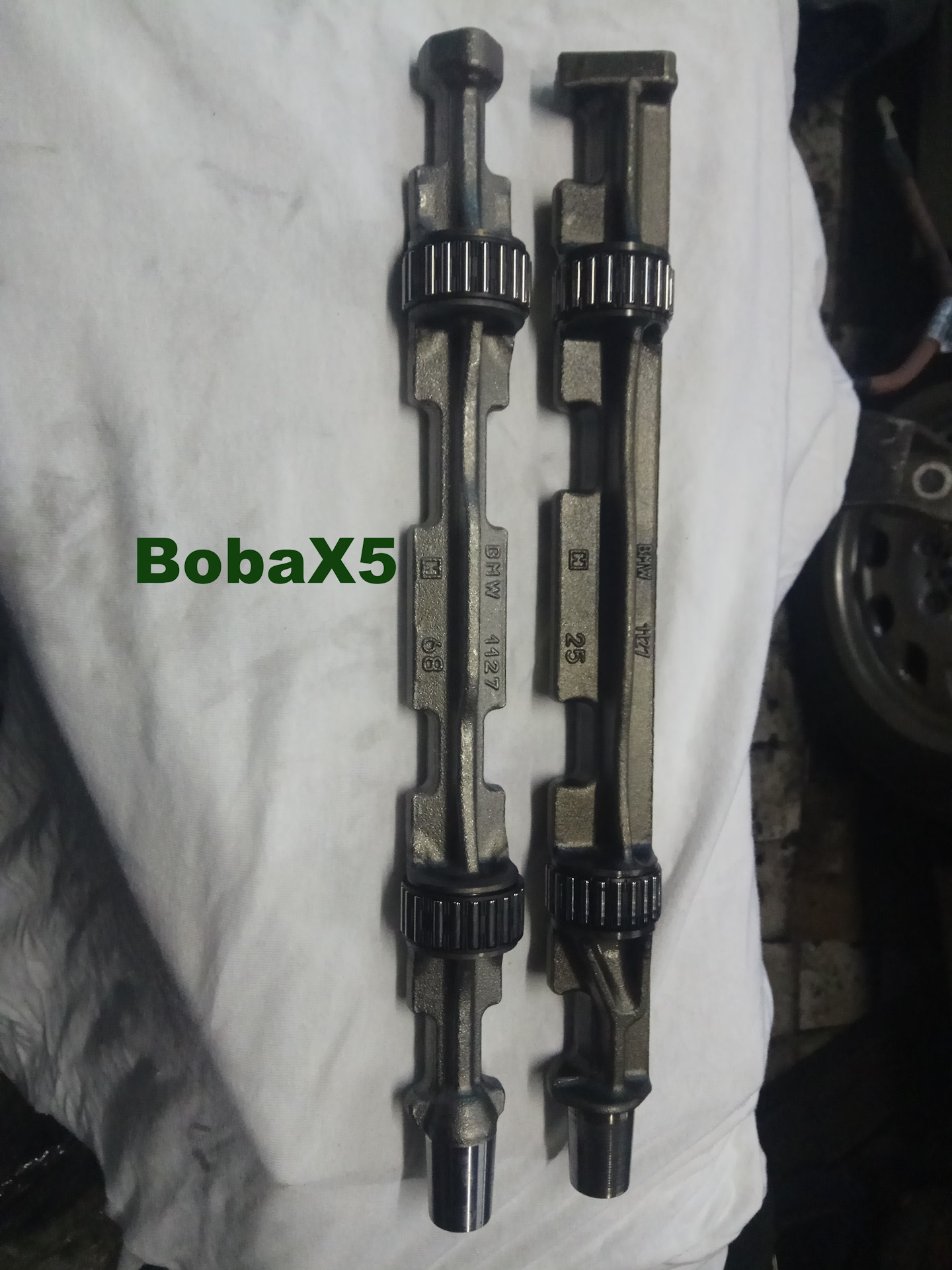 Короче говоря вздохнув, пришлось покупать еще и новые балансирные валы — 11 27 8 593 806. 11 27 8 509 738 — шестерня. Через несколько дней получили валы. Довольный Алексей примчался и вручил их мне))