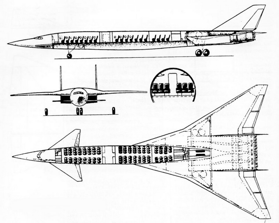 Как известно, дальность и экономичность летательного аппарата прямо пропорциональны его аэродинамическому качеству и скорости полета и обратно пропорциональны относительному расходу топлива двигателями. К середине 1950-х годов специалисты в области аэродинамики накопили достаточный опыт, чтобы спрогнозировать пределы аэродинамического совершенства самолета. Тем не менее с одной стороны, их оценки были оптимистичны, с другой — настораживали, поскольку максимальное значение отношения коэффициентов подъемной силы и аэродинамического сопротивления получалось почти в два раза меньше, чем у дозвукового самолета. Обнадеживало другое: крейсерская скорость полета возрастала более чем вдвое, что частично компенсировало потери аэродинамического качества. Оставалось решить наиболее сложную задачу — создать очень экономичные двигатели.