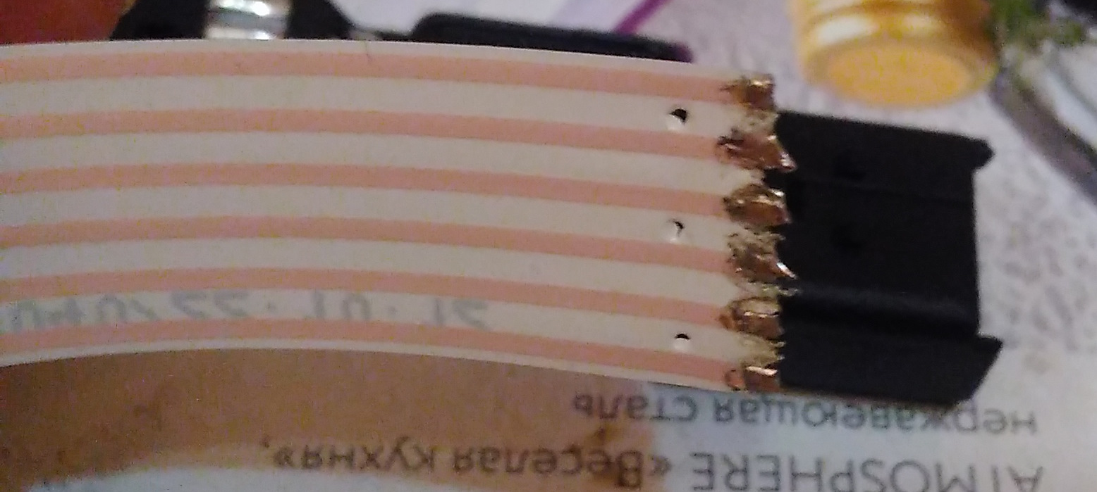 Видим причину обрыва шлейфа – проставочные кольца сбились и шлейф перестал раскладываться как положено.