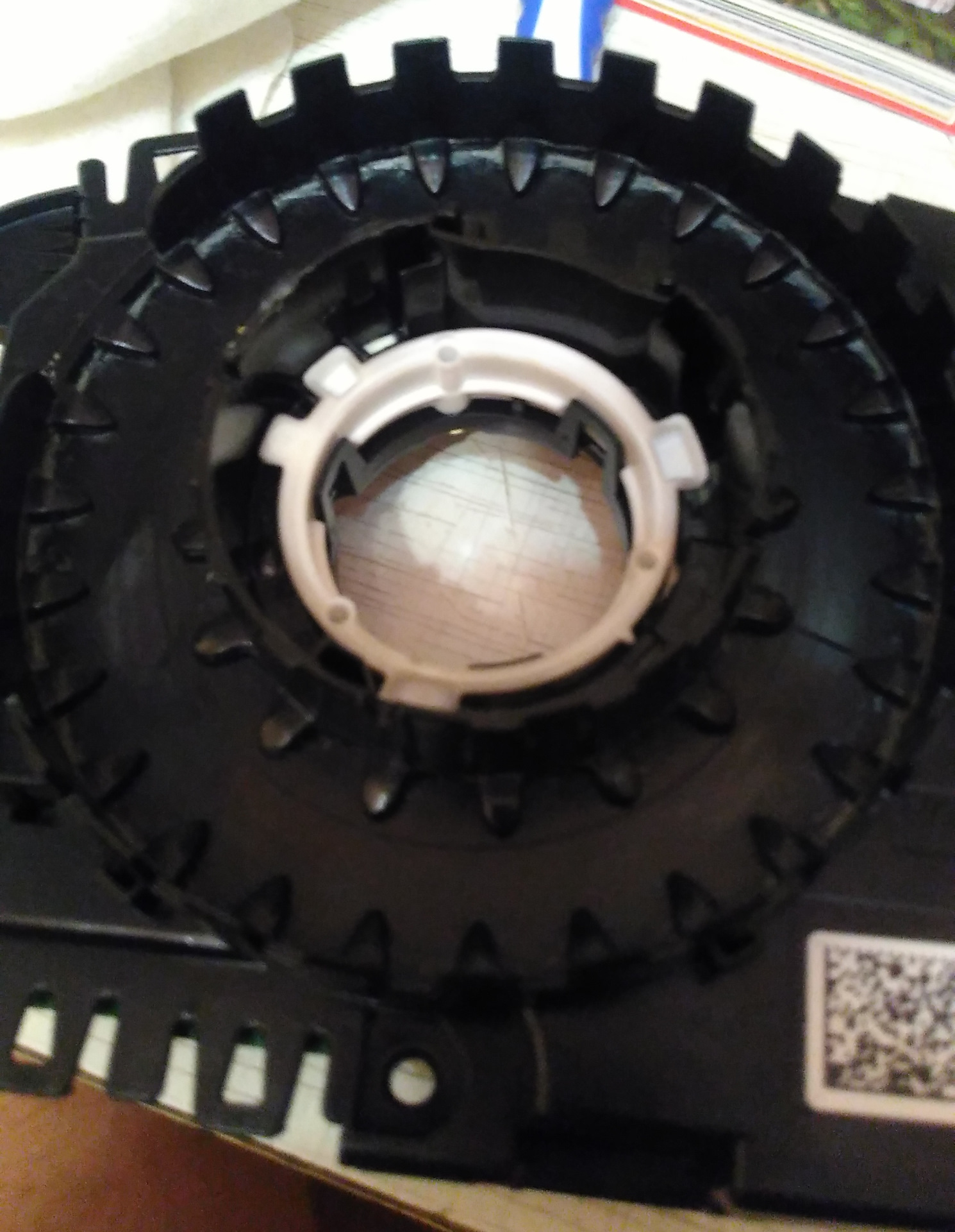 И так – выставляем среднее положение кольца подрулевого вращая его из стороны в сторону и считая обороты. Должно получиться по два с половиной (почти) оборота в каждую сторону. Затем, крутим его по часовой до упора и оставляем в таком положении. Начинаем укладку шлейфа с установки на место наружнего разъема.