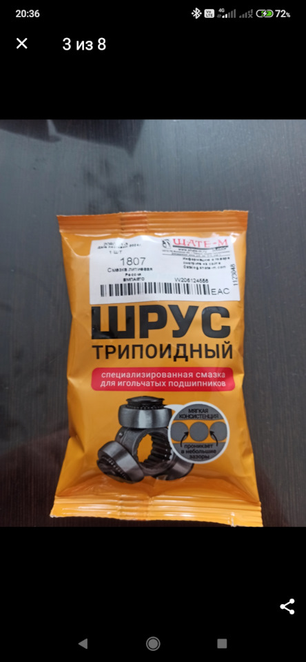 Тоже недавно перебирал трипод на своем ниссане. Пробег (реальный) 330 тыс, привода родные, ни разу не вскрывались (большой хомут стоял сплошной, неразъемный). Возле малого хомута на пыльнике начали образовываться трещинки. Дабы не лазить в привода 10 раз (перебирал подвеску и менял сцепление), решил заменить пыльники. Начал снимать пыльник, и удивился тому, что из него вытекла смазка. При чем смазка такая, как будто ее недавно меняли, по цвету желтоватая, и немного прозрачная. Это я к чему, за 330 к и 22 года ей нифига не сделалось. Потом ко мне заехал брат, он работает в автосервисе, и тут он мне говорит, что в триподы должна закладываться специальная смазка, не как на наружных шариковых ШРУС. А на тот момент я уже купил пыльники GKN (LOBRO), нашел их по маркировке на заводском пыльнике, так в комплекте была смазка с дисульфитом молибдена, хотя пыльник то для трипода (три выемки на пыльнике). И тут я начал изучать, какую смазку закладывать в трипод. Тоже хотел купить какую-нибудь европейскую или японскую, но сейчас хрен что найдешь, а если и есть то стоит как крыло самолета. В итоге время поджимало и пришлось заложить смазку нашего производителя, ВМП, ниже есть картинка. На данный момент прошел 1,5 тыс км. Рано конечно что-то говорить, но пока все гуд.